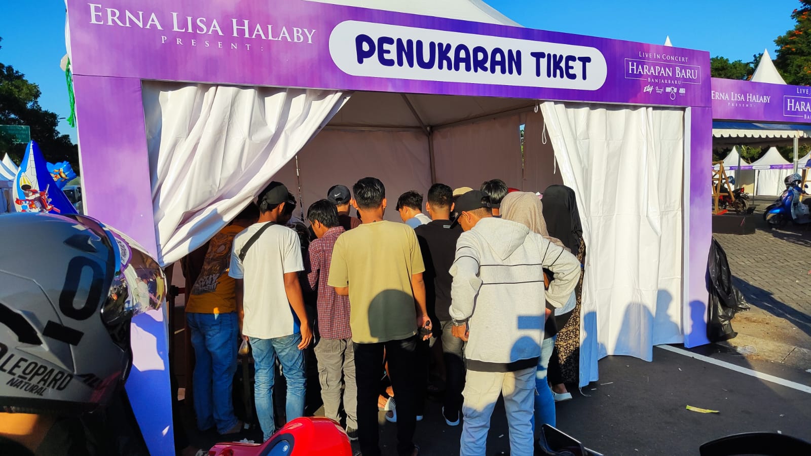 Sehari sebelum konser, para ‘Cliquers’ atau fans ungu menyerbu stan penukaran tiket, pada Minggu (28/7) kemaren.