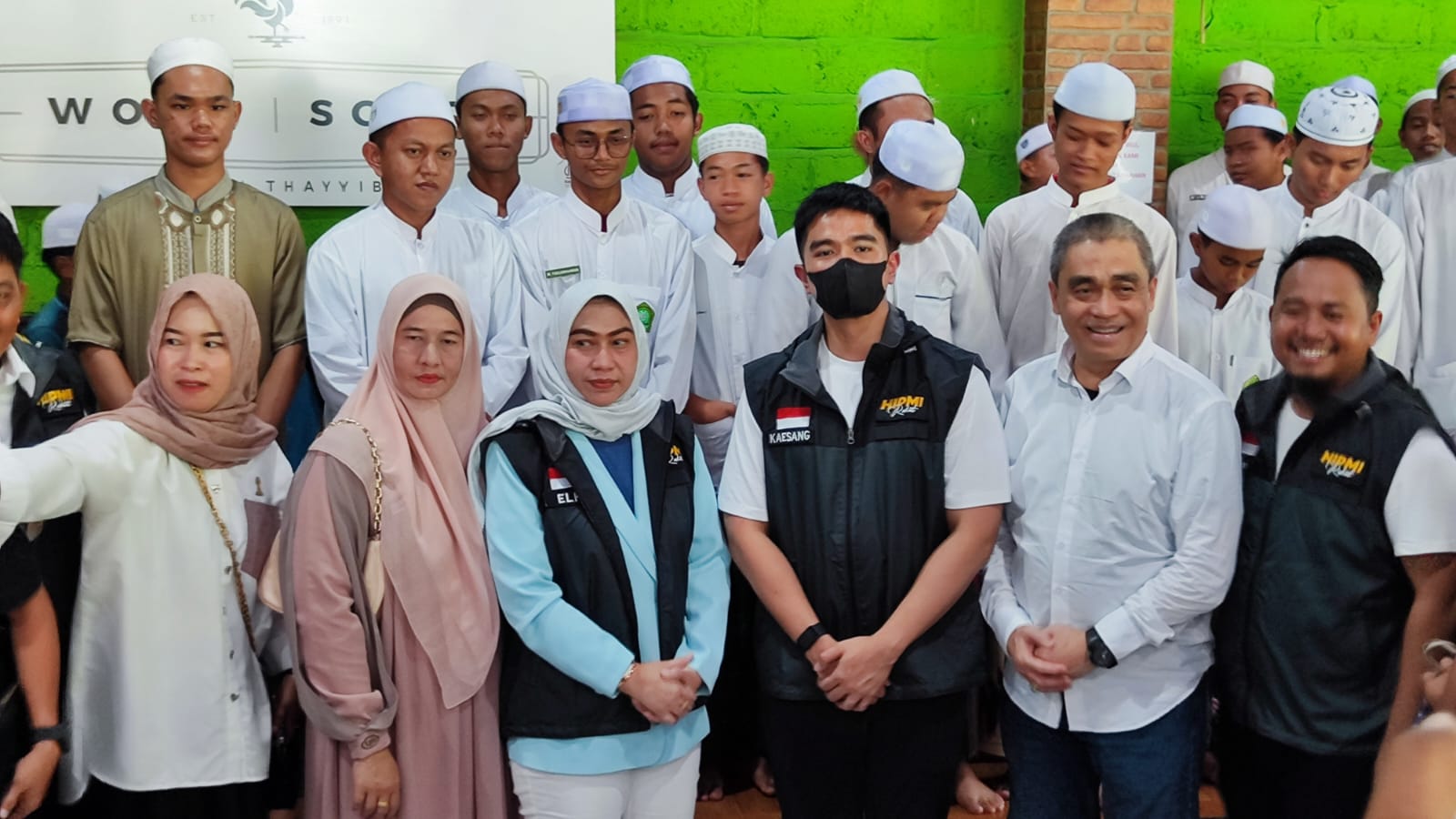 Sesudah memberikan santunan, Kaesang juga memberikan buku dan susu kotak kepada ratusan anak yatim piatu.