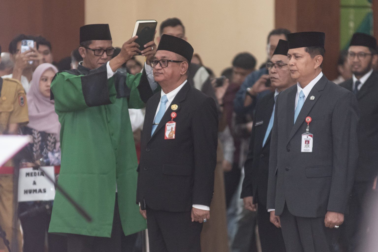 Pejabat Pemprov Kalsel diambil sumpah saat menjalani pelantikan oleh Gubernur Kalsel. Foto : Biro Adpim Setdaprov Kalsel