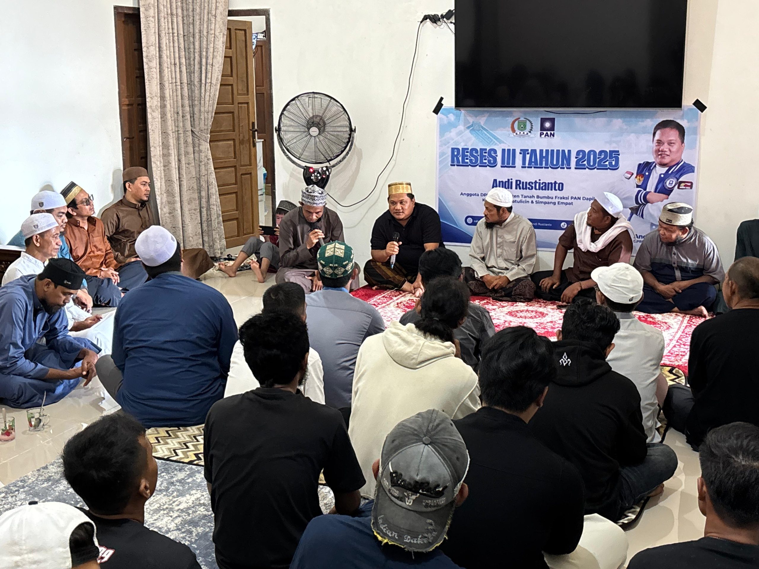 KALSELMAJU.COM, BATULICIN – Anggota DPRD Kabupaten Tanahbumbu dari Fraksi Partai Amanat Nasional (PAN), Andi Rustianto, kembali melaksanakan Reses III Tahun 2025 di Desa Gunung Antasari, Kecamatan Simpang Empat, Minggu (24/8).