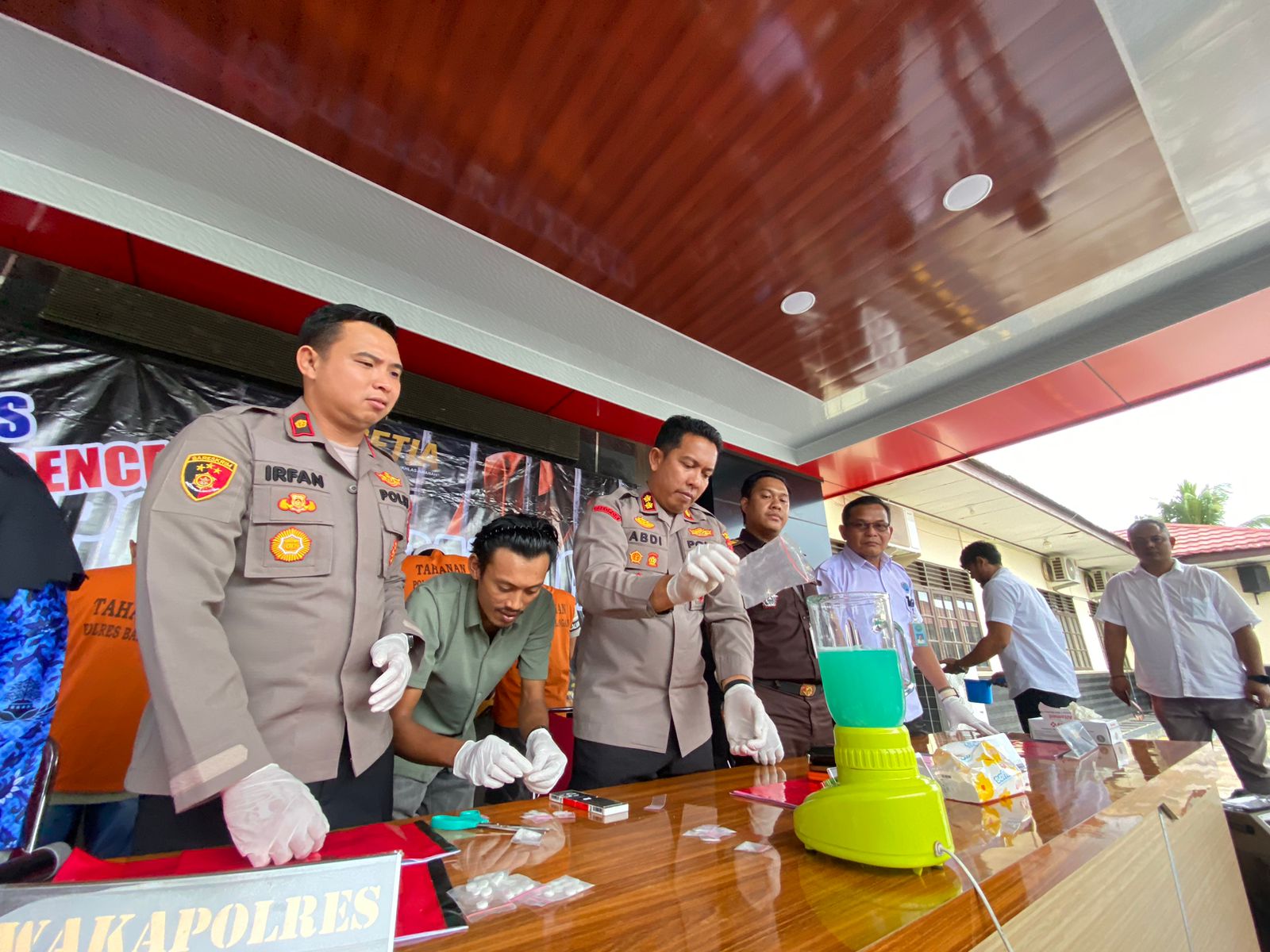 Dalam proses pemusnahan, sabu dan pil karisoprodol di hancurkan menggunakan blender yang bercampur dengan air detergen.