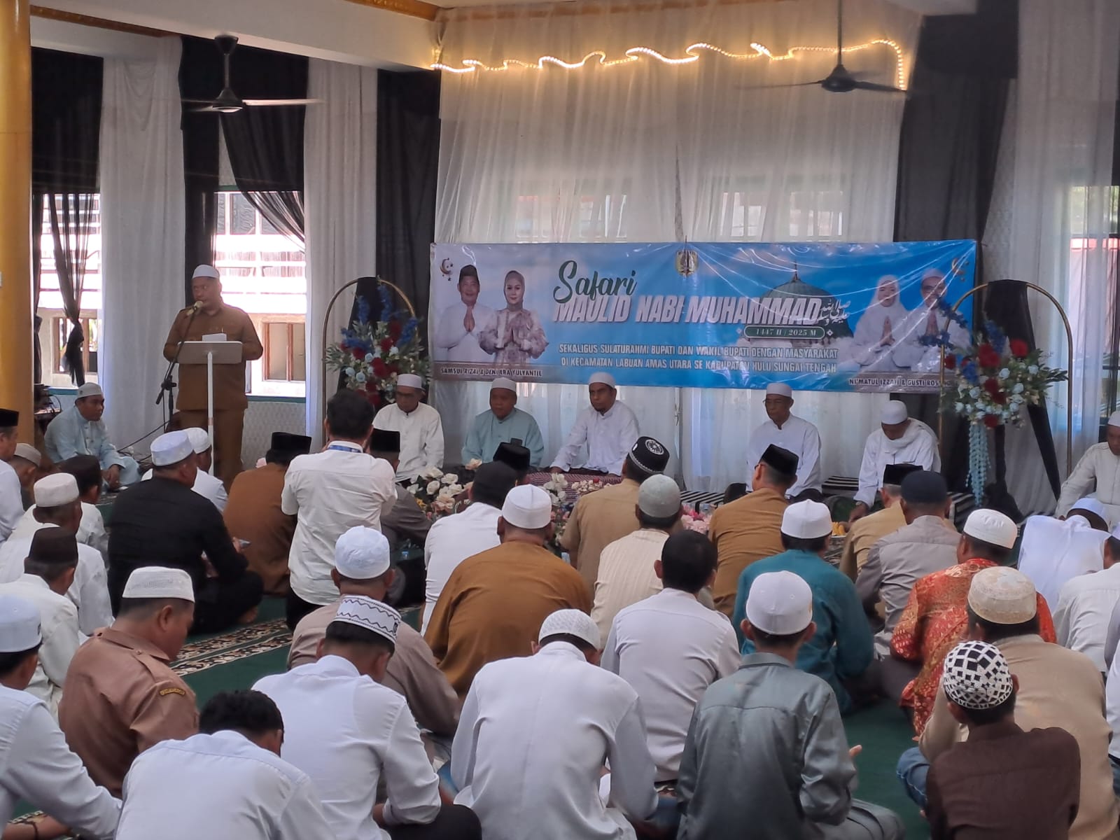 KALSELMAJU.COM, BARABAI – Bupati Hulu Sungai Tengah (HST) Samsul Rizal menghadiri Safari Maulid Nabi Muhammad SAW 1447 Hijriah sekaligus bersilaturahmi dengan masyarakat di Masjid Masakin, Desa Binjai Pemangkih, Kecamatan Labuan Amas Utara, Senin (22/9) siang.