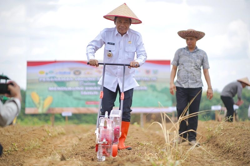 Bupati Balangan Abdul Hadi menegaskan bahwa penanaman jagung tersebut bukan sekadar seremoni, melainkan langkah konkret memperkuat ketahanan pangan nasional.