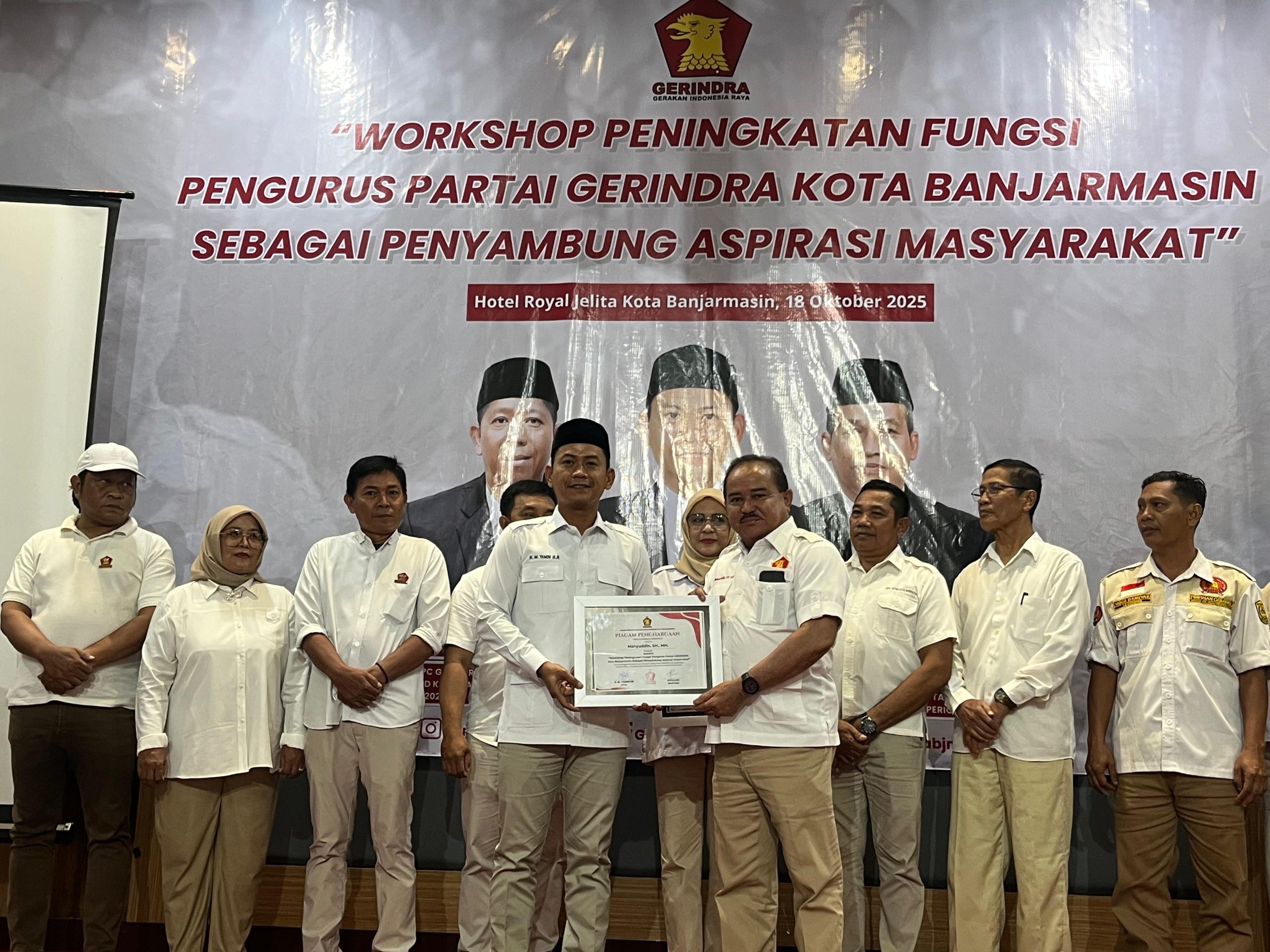 KALSELMAJU.COM, BANJARMASIN – Dewan Pimpinan Cabang (DPC) Partai Gerindra Kota Banjarmasin menggelar Workshop Peningkatan Fungsi Pengurus sebagai Penyambung Aspirasi Masyarakat, Sabtu (18/10/2025), di Royal Jelita Hotel Banjarmasin.