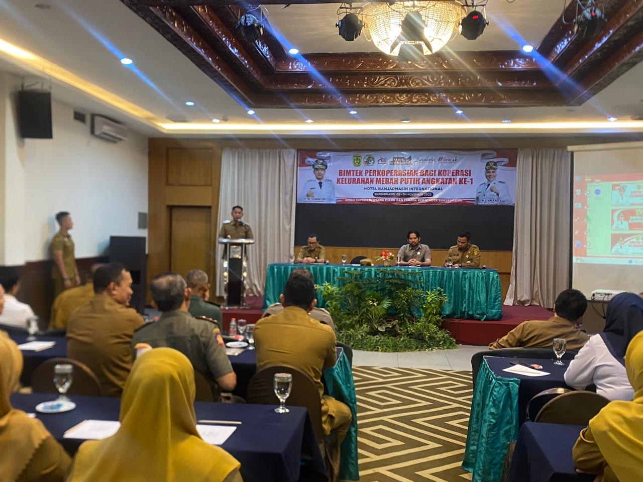 Kegiatan Bimbingan Teknis (Bimtek) Perkoperasian bagi Koperasi Kelurahan Merah Putih Angkatan Pertama terlaksana di Ballroom Hotel Banjarmasin International (HBI), Senin (3/11/2025).