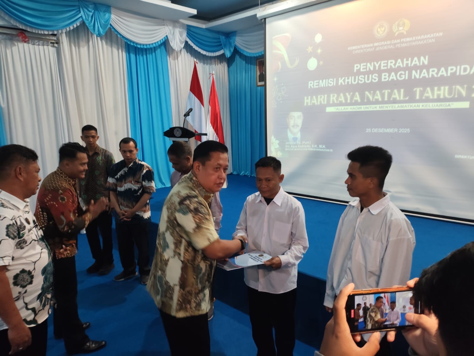 “Dari 13 warga binaan Nasrani, 10 orang diusulkan mendapatkan remisi. Namun tiga orang belum memenuhi syarat karena status hukumnya belum inkracht. Dari 10 orang yang memenuhi syarat itu, satu orang sudah mendapatkan Pembebasan Bersyarat, sehingga yang menerima remisi hari ini berjumlah sembilan orang,” jelasnya, Kamis (25/12/2025).