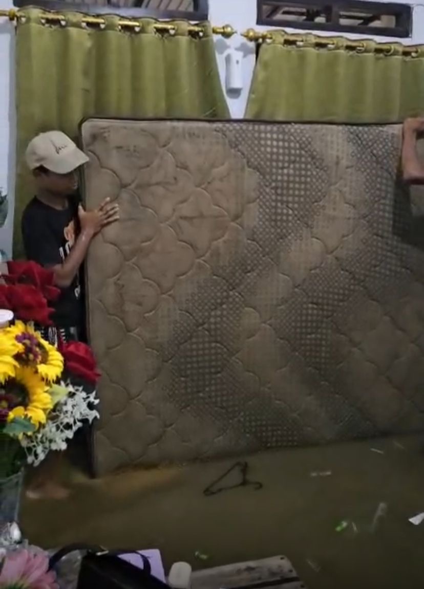 “Air masuk ke dalam rumah. Ini bukan lagi genangan di jalan, tapi sudah merendam lantai, karpet, bahkan merusak beberapa perabotan elektronik,” ujarnya kepada awak media.