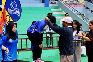 Penyerahan medali oleh Wakil Gubernur Kalimantan Selatan, Hasnuryadi Sulaiman, melalui Kepala Dinas Kepemudaan dan Olahraga Kalsel, Perbiadin Hapiz.