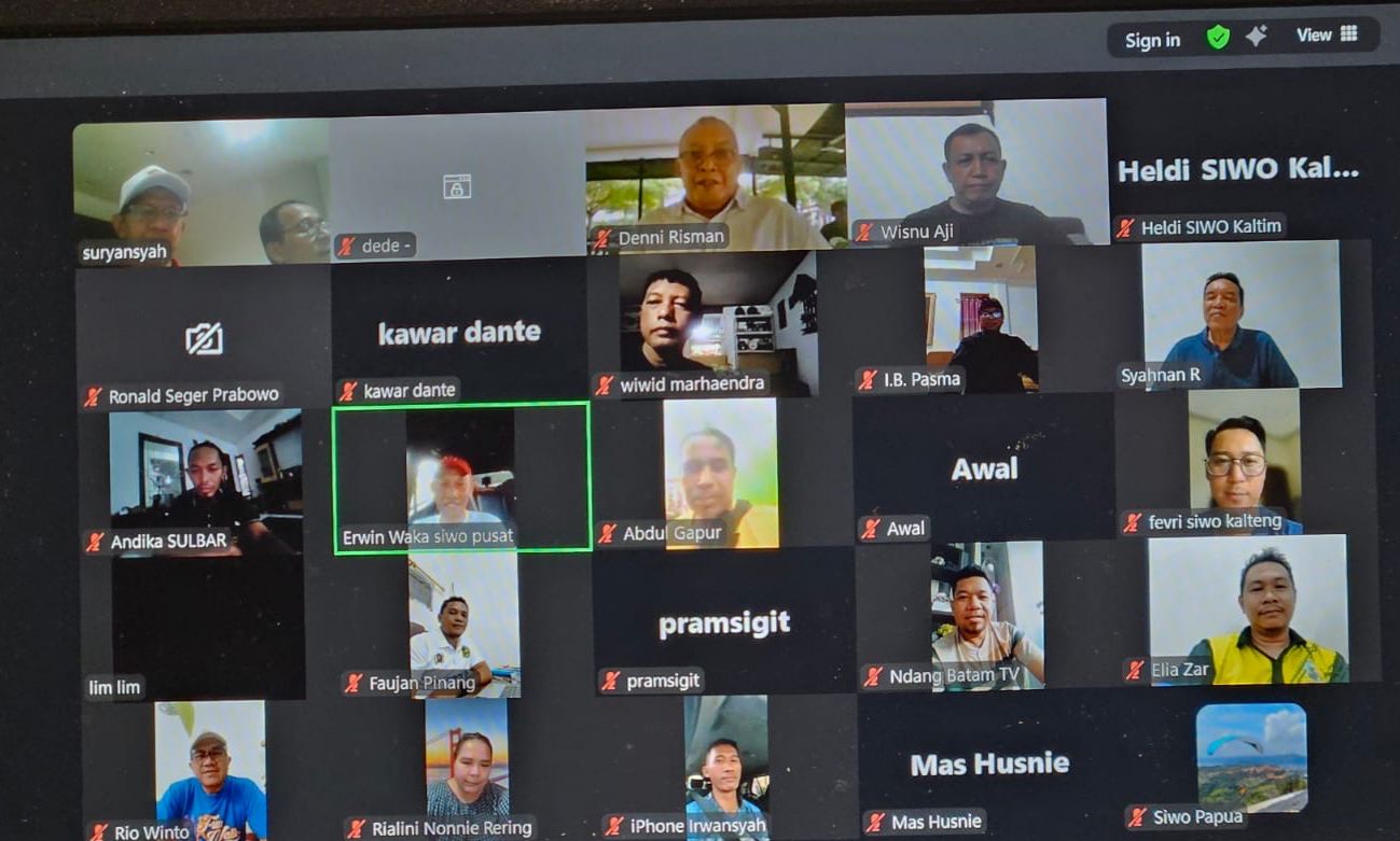 KALSELMAJU.COM, JAKARTA – Pengurus SIWO PWI Pusat menggelar Rapat Koordinasi Nasional (Rakornas) SIWO se-Indonesia melalui Zoom Meeting pada Sabtu (6/12). Rakornas ini menjadi pertemuan perdana sejak terbentuknya kepengurusan baru di bawah kepemimpinan Suryansyah.