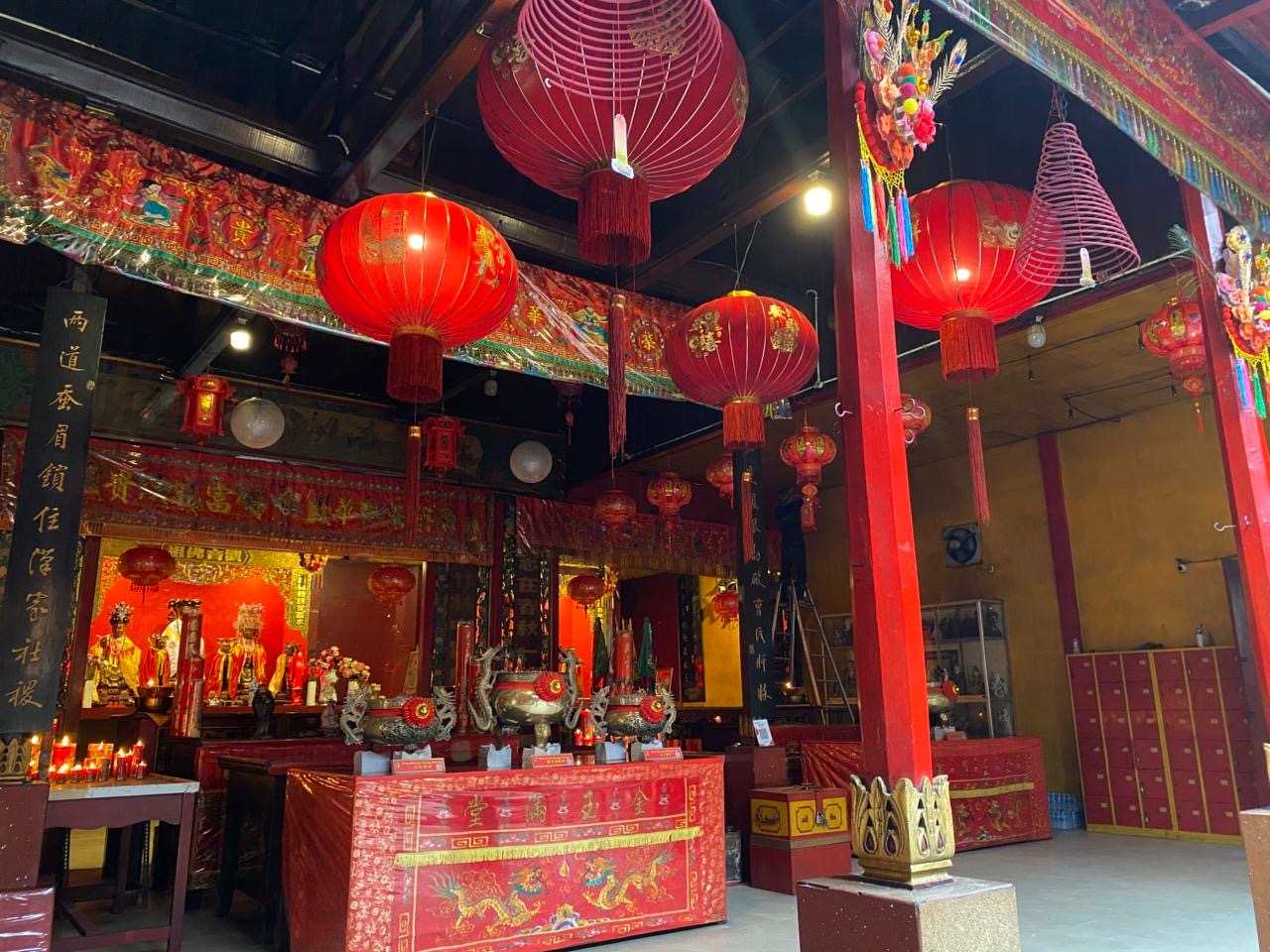 Sejumlah petugas terlihat memasang lampion serta membersihkan area klenteng guna menciptakan suasana yang nyaman bagi umat yang akan melaksanakan ibadah.