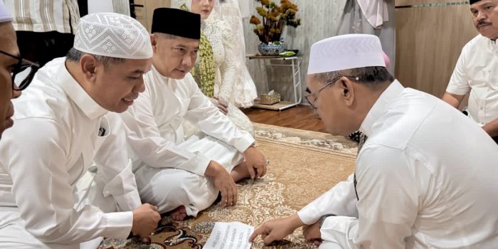 KALSELMAJU.COM, BARABAI – Prosesi akad nikah pasangan Nadea Rizky Ananda dan Rabby Al Adiyat berlangsung khidmat di kediaman KH Muhammad Bakhiet, Barabai, Selasa (10/3/2026) malam. KH Muhammad Bakhiet memimpin langsung prosesi sakral tersebut.