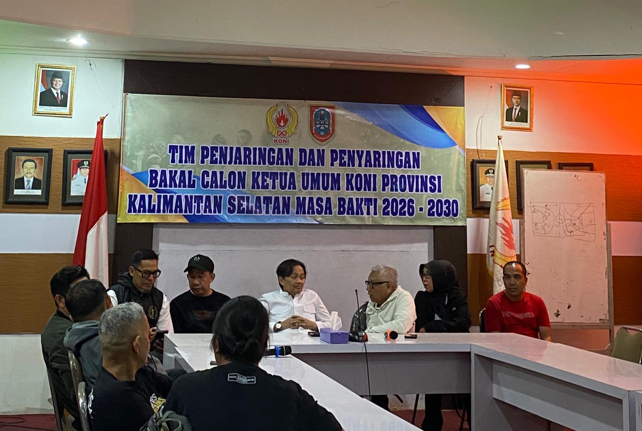 Hingga saat ini, proses penjaringan bakal calon Ketua Umum KONI Kalimantan Selatan masih terus berjalan, dengan panitia memastikan seluruh tahapan berlangsung transparan, akuntabel, serta mengedepankan prinsip sportivitas dalam dunia olahraga.