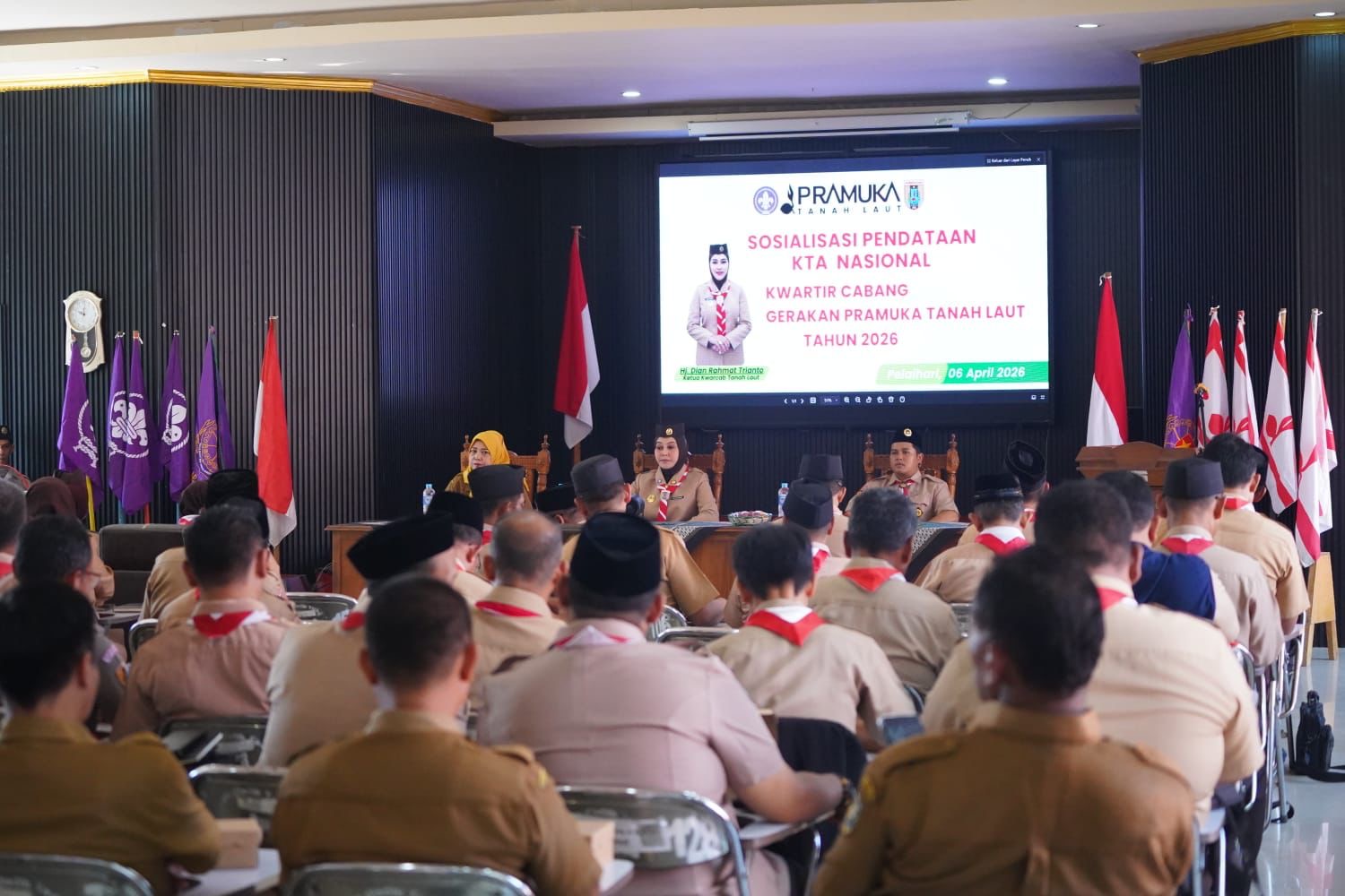 Kegiatan yang menyasar pembina gugus depan dan pengurus ranting se-Kabupaten Tanahlaut ini berlangsung di Aula Dinas Pendidikan, Senin (6/4/2026).