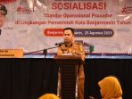 KALSELMAJU.COM, BANJARMASIN – Ikhsan Budiman membuka langsung sosialisasi aplikasi SIPSOPAN (Sistem Informasi Pengelolaan Standar Operasional